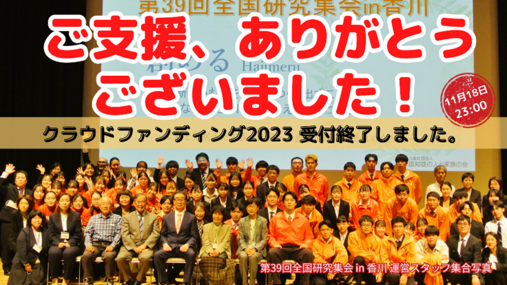 9月21日から始まった、クラウドファンディング「認知症の人と家族の会2023|孤立する認知症の人や介護家族をゼロに」も、無事、本日23時をもって終了しました。