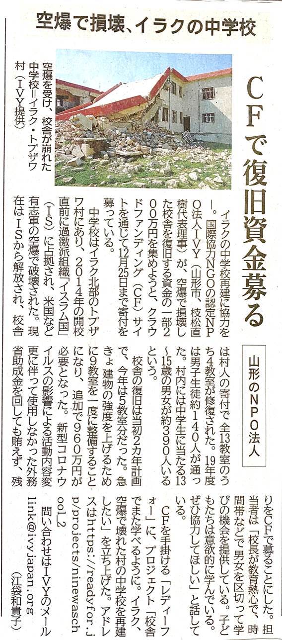 山形新聞に今回のプロジェクトについての記事が掲載されました!