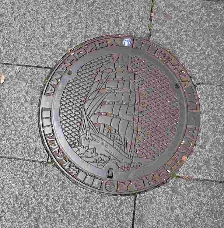 横浜みなとみらい地区には帆船日本丸がデザインされたマンホールのフタがあります!おいでの際にはぜひ探してみてください!