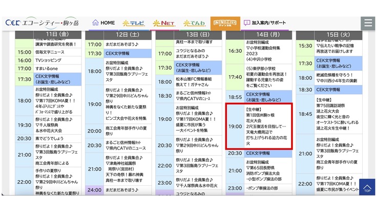 今回も地元ケーブルテレビのエコーシティー・駒ヶ岳の多大なるご協力のもと、