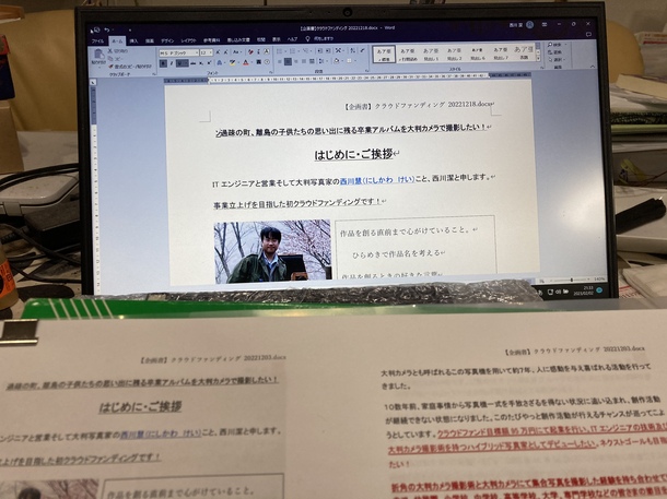 自分が作成したクラウドファンディングチャレンジの企画書。