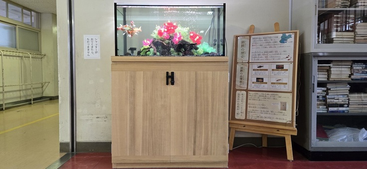 現在、水槽を設置中の桃山小学校は夏休み真っ只中。