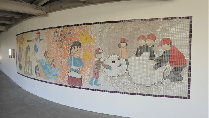 縦1.6m×横7mの大きなタイル壁画が完成しました。