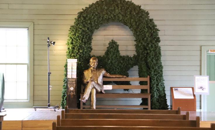 生誕の地の近くにある下の橋教会では、毎月稲造の読書会が開かれているそうです。教会の前には「新渡戸を学ぶ 楽しき群れ ここに在り」と書かれた案内もありました。