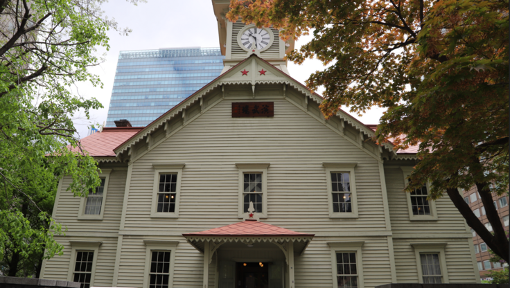 野澤監督率いるロケハン(宮田P、田寺P)が北海道へ。札幌時計台です。これは札幌農学校の校舎のひとつ演武場で現在の講堂のような場所ですね。中にはクラーク博士の像がありました。