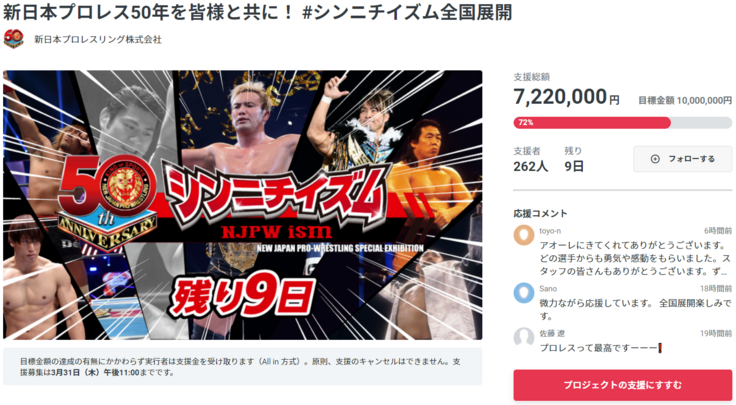新日本プロレス初となるクラウドファンディング終了まで残り9日となりました。