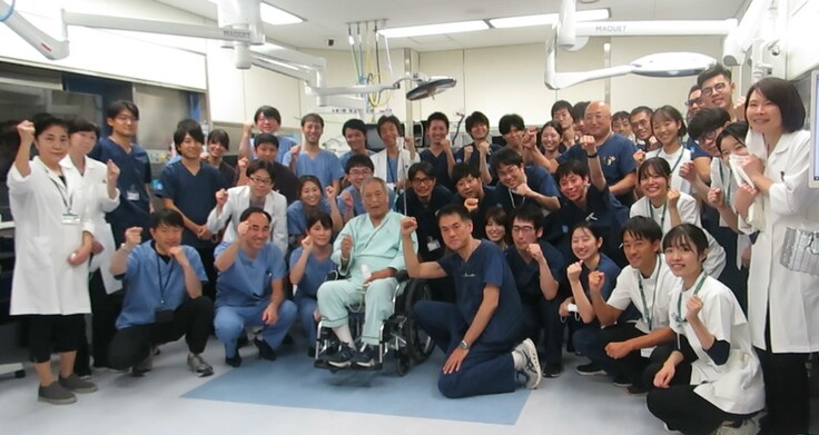 (写真:ドクターカーで救命した患者さんとの全体写真です。*本プロジェクトにおいてお写真掲載にに同意をいただいております。)