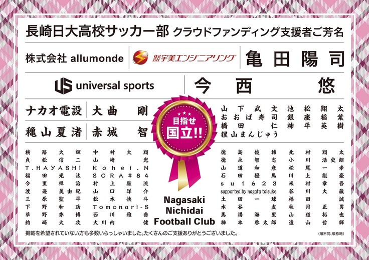 改めまして、今回のクラウドファンディングでのご支援誠にありがとうございました。
