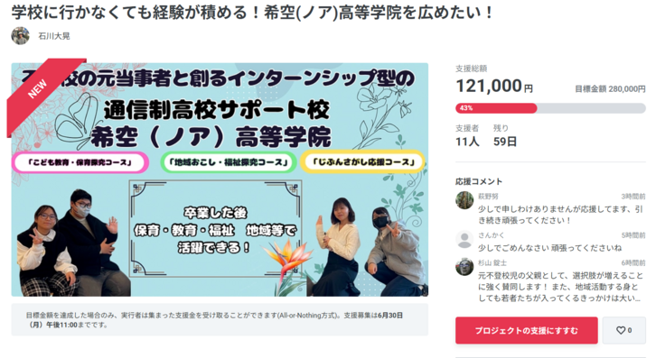クラファン2日目。初日の支援総額が目標金額の43%を突破!今だからこそもっと伸ばしたい!!