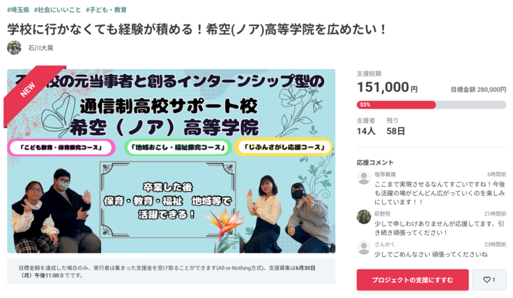 丁度GWに入ったという事もあり、当学院を一緒に立ち上げた、高校生や学生もお休みに入り、この記事を書いている代表理事と同じぐらいの頻繁でクラファンページを確認をしてくれているようで。