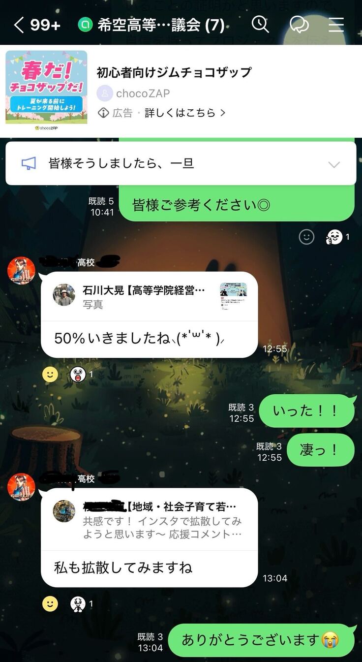 等のリアクションが、当学院のLINEグループ内で飛び交っております。