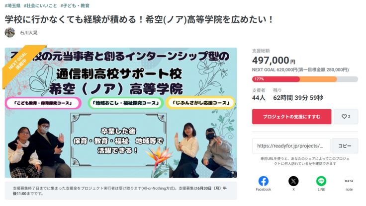 クラウドファンディングをきっかけに、希空(のあ)高等学院の未来をみんなでつくれましたらと思います。