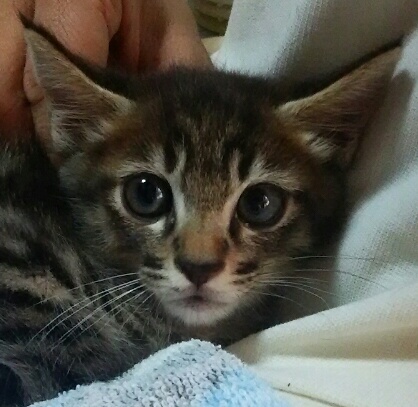 おそらく生後2ケ月くらいの頃、交通事故に遭って動けないでいるところを助けられ、助けた方が北海道在住だった為、退院後ノアでお預かりすることになりました