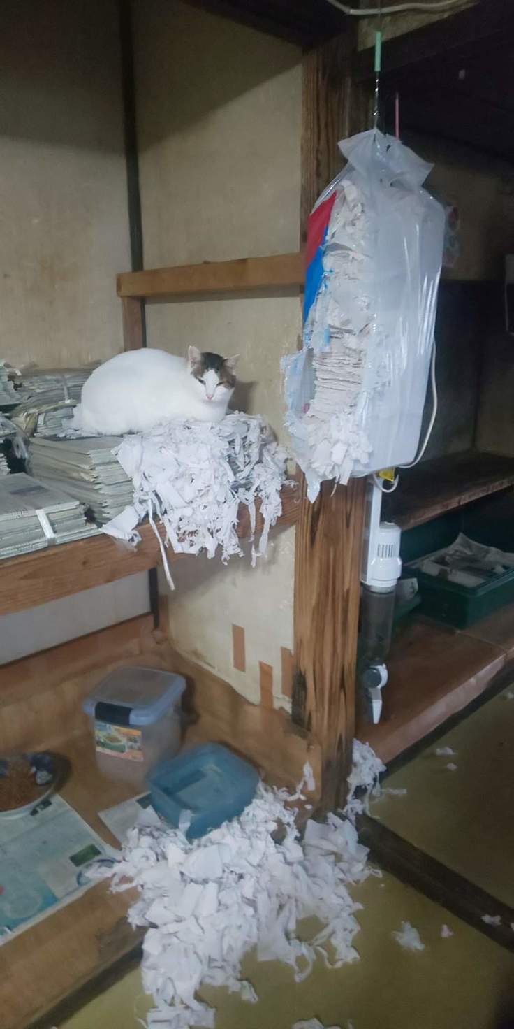 ちり紙を散乱させて満足気・・・・