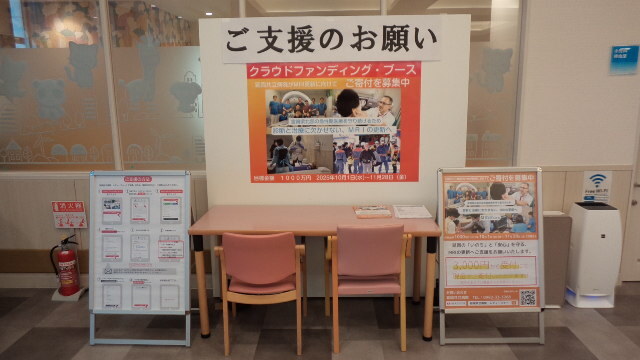 10月1日(水)より当院1階受付横(小児科前)にクラウドファンディングブースを設けております。