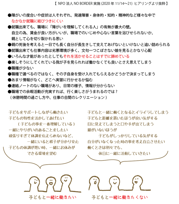 障がい者を子に持つご家族「障がい者就労課題ヒアリング」