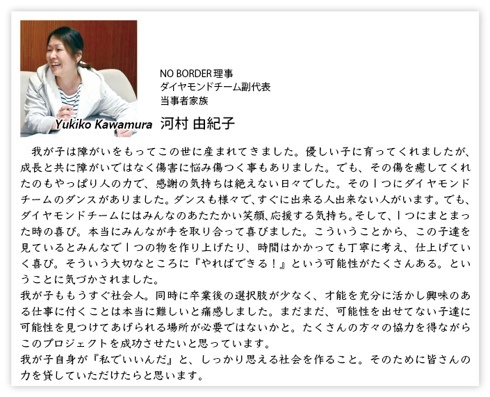 チーム名「ダイヤモンド」の由来は、障がいのある彼女のつぶやき。