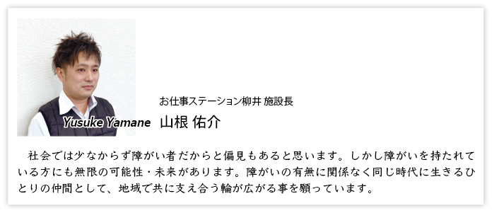課題の精査・障がい者や障がいを持つ家族へのヒアリング、実際に障がい者と作業を共にして見えてきた「就労機会の増加」「障がい者への理解を深める」「人それぞれの個性を見出し発信する」ことが必要だと感じました。実際に作業をしていく中で、お互いを想い合い、相手を認め尊重することの大切さを発信していくことが何より重要だと考えます。