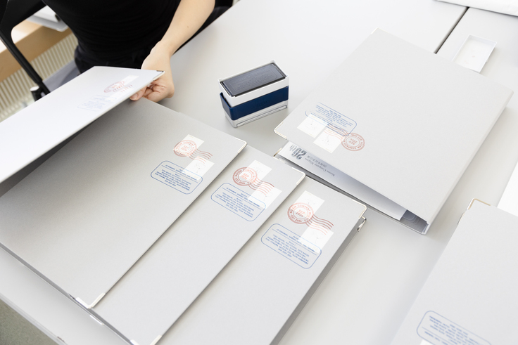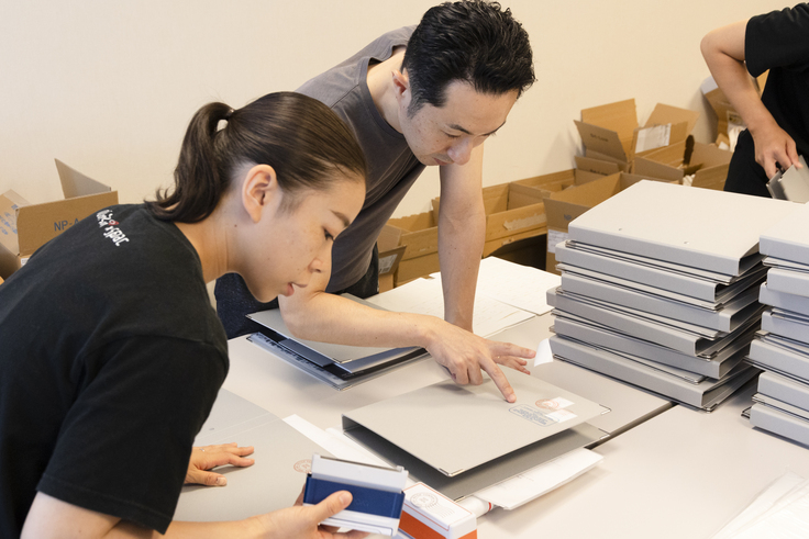 この最後のファイルへの綴じこみ、切手の貼り付け、スタンプを押す作業は、全てメンバーとスタッフによる手作業です。