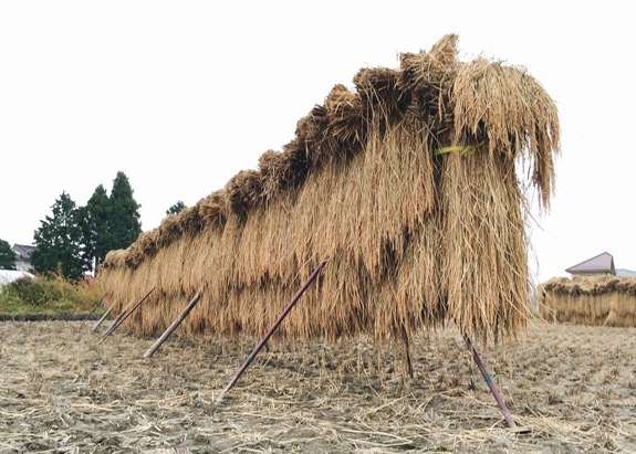 稲を刈った後、お米を「はざ」にかけて自然のまま天日乾燥させるという、昔ながらの方法です!これを「はざかけ米」と言います。
