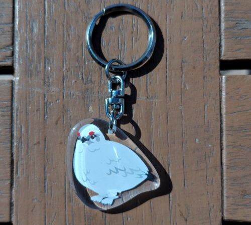 冬羽のオスでぽっちゃりタイプのライチョウでとてもかわいいキーホルダーです。カギやお財布の目印に最適です!