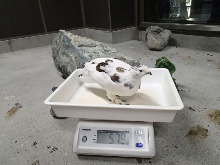 夏羽のライチョウに雪が降るようすをみることができます。当園でも好評です。