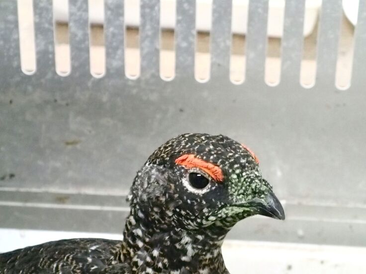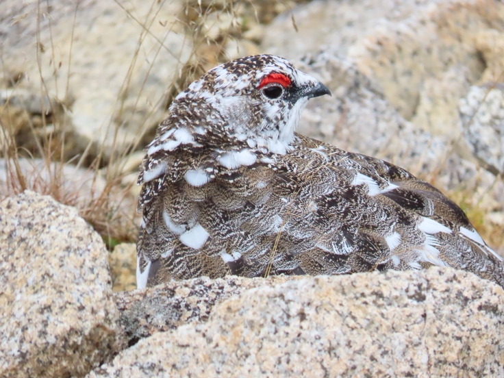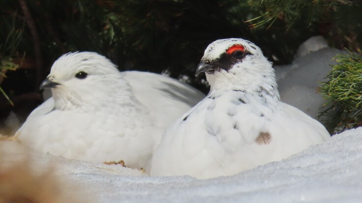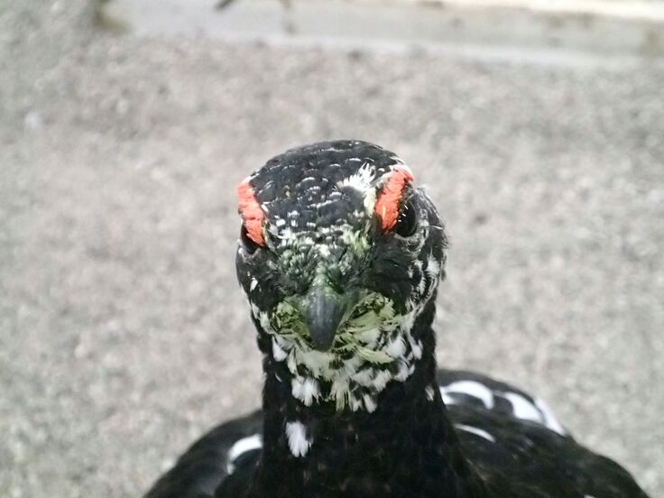 ライチョウのオスは発情期に大きく発達し目立つようになります。私たちはこの肉冠の状態なども観察し発情の度合いを判断しています。