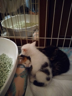 乳飲み子だったため、哺乳瓶からミルクを飲むことを3匹とも拒否しており、