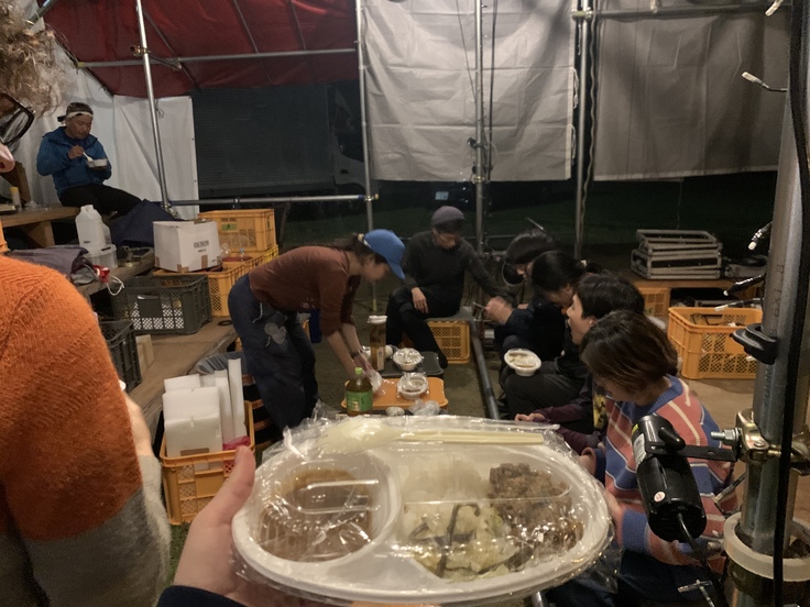 「八月のたそがれ」オーナーふるさわさんがなんとなんとカレーを差し入れてくださり、さらに客席作りまで手伝ってくれました…(TT)