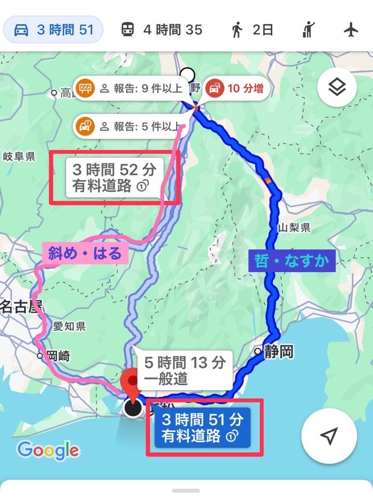 まさかの出発早々、山梨経由と岐阜経由の二手にはぐれる😭😂