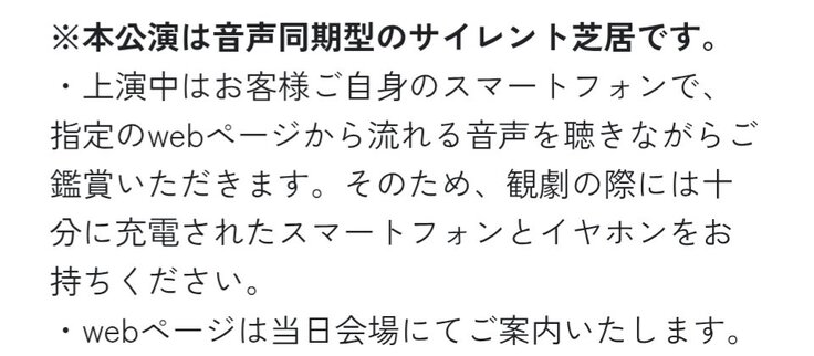 音声同期型サイレント芝居を試みます。充電されたスマートフォンとイヤホンのご準備、ご協力をお願いいたしますᖳᖰ