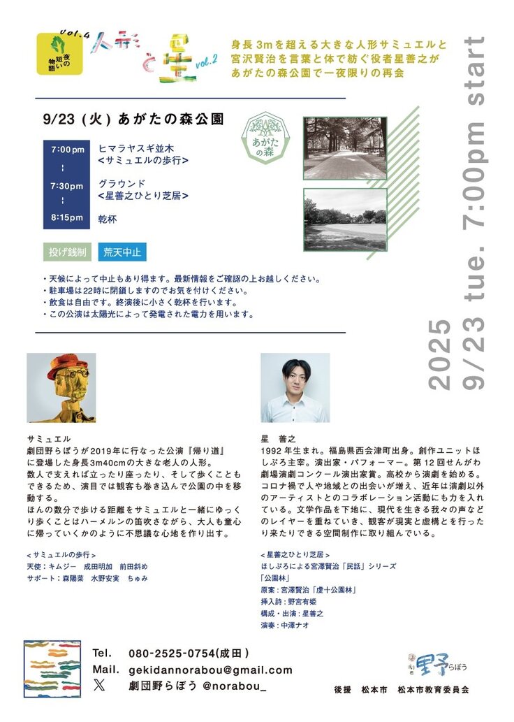 【9月活動予定】ポポスタラタ山松本公演と人形と星vol.2ほか