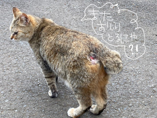 家猫なら、エリザベスカラーをしてあげられるけど、外猫なのでそうもいかない。