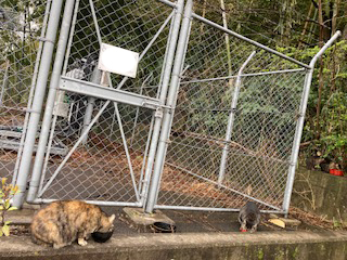 3匹の猫さん。今日は、竹藪から出てきてくれました。
