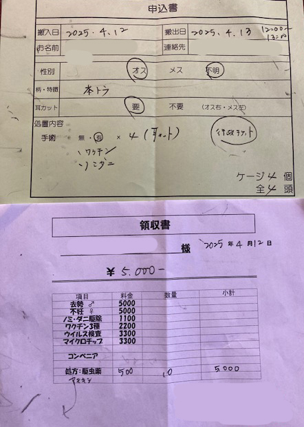 本日、茶とらオス猫4匹を捕獲後、去勢手術のために病院に連れていきました。