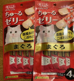 Mさんがチュールゼリーをくださいました。これに包んで、あげるといいそうです。