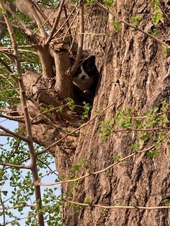 ビビちゃんのいる木の又まで、地上から2.5mくらいはあるでしょうか。