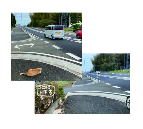 交差するところには、横断歩道もないので、人間でも横断するのに気をつけないとなりません。