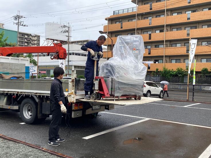 トラックで慎重に搬入。支援者様からの想いを胸に、見守ります。