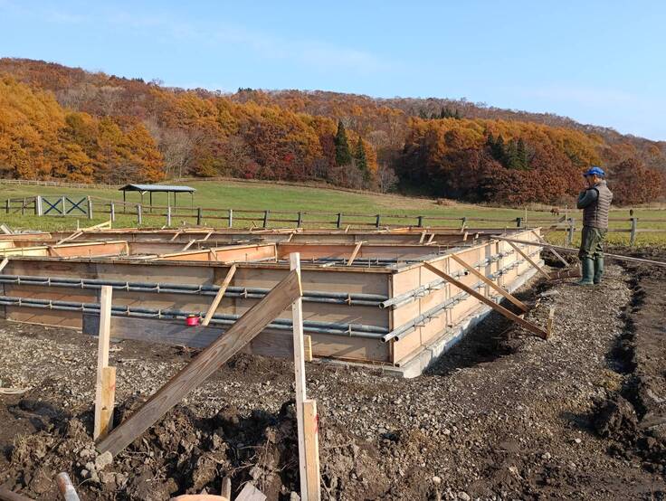 厩舎も基礎工事が進んでいます。年内には建前まで進められそうな見通しとなるなど、皆様のおかげで工期を早めることができました。