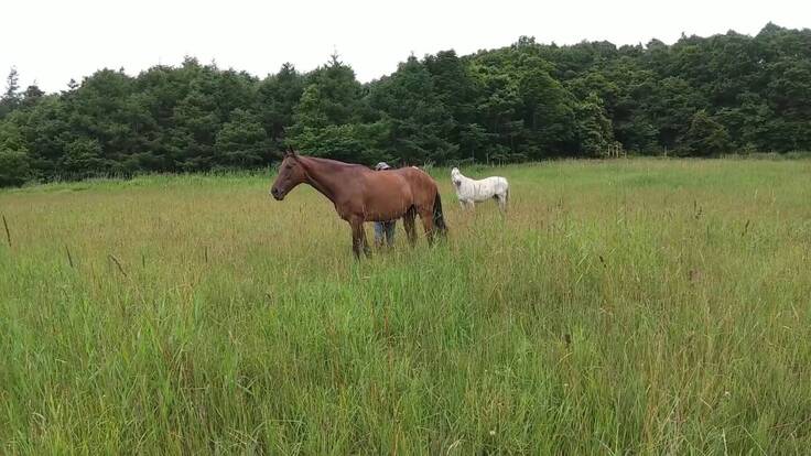 借りた牧場は5年以上空いていたため、草が伸びてまるでジャングル。整備は草刈りから始まりました。放牧地の牧柵はあちこち壊れていてすぐには放牧できず、2頭にはしばらくは小さなパドックで我慢してもらいました。