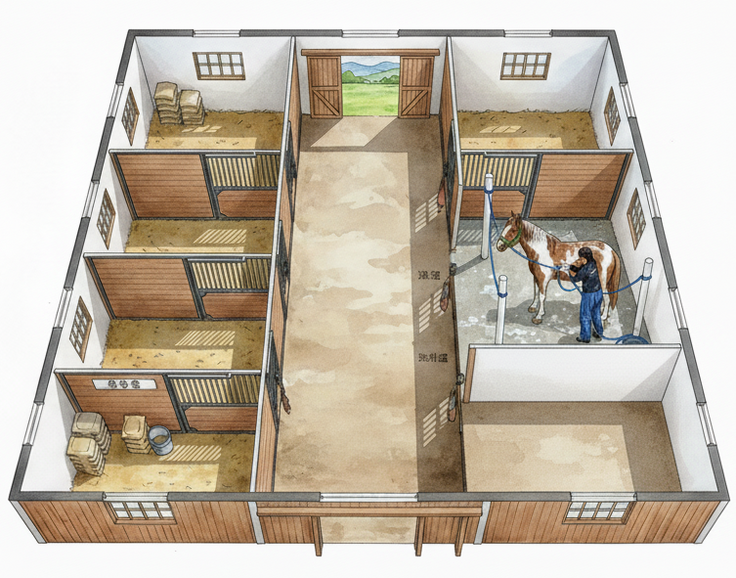 建ったばかりの新厩舎を川越・佐々木がご案内します。