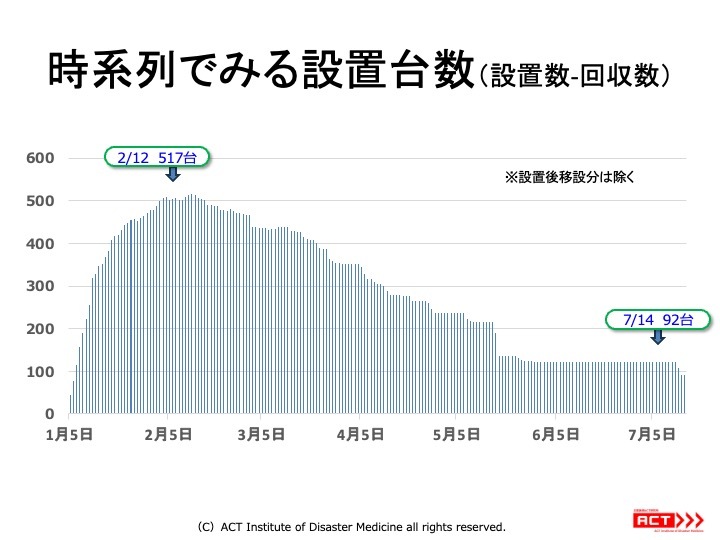 途中、水害による新たな被害が拡大したいこともあり、7月14日時点で92台の自動式ラップトイレが稼働している状況です(図-2)