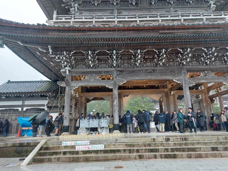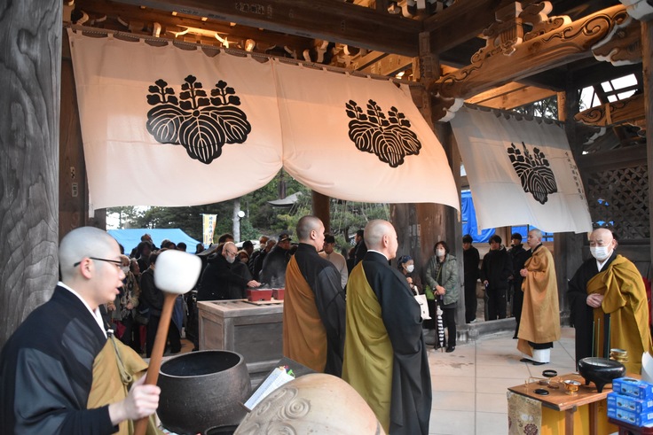 年が明けた1月1日(水)15時から、大本山總持寺祖院の山門にて、總持寺通り商店街による「ふるまい鍋」を地域の方々に提供し、その後、16時10分から、令和6年能登半島地震および令和6年奥能登豪雨の犠牲者追悼会を執り行いました。お越しいただいた方々、ご協力いただいた方々、ありがとうございまいした。
