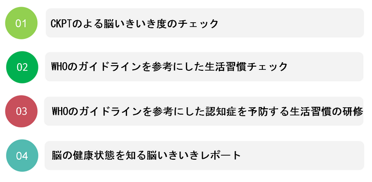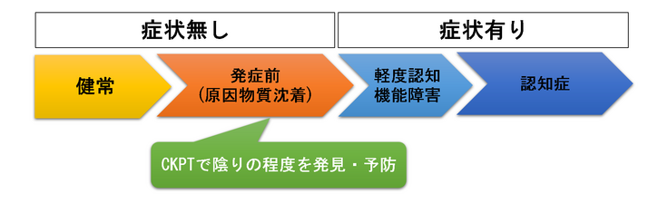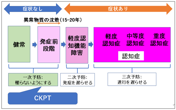 症状の出る前から認知機能の陰り程度をCKPTで見つけ予防するものです。