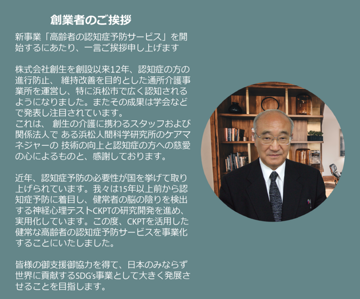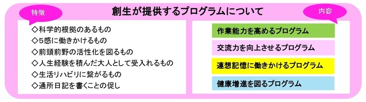 株式会社創生はここ12年認知症を対象としたデイサービス運営しており、