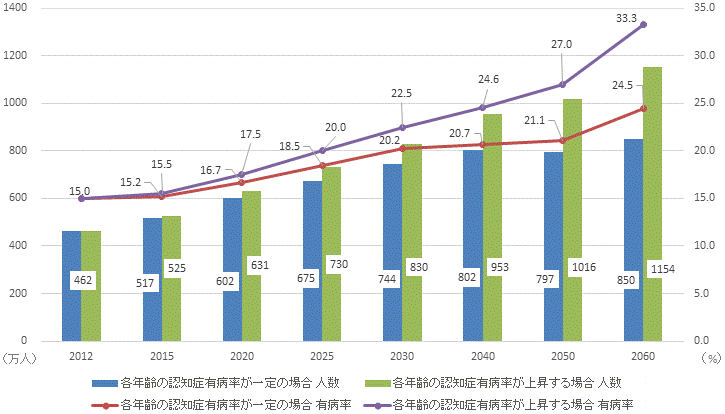 また、国家的視点から言えば、「脳の健康診断・研修」事業は国の認知症施策大綱の2つの柱の一つである「予防」に該当し、認知症に陥る時期を遅らせる効果が期待出来る。すなわち2060年まで右肩上がりの認知症患者数の勾配の鈍化が期待できるので、自治体や認知症疾患医療センターなどで使用される可能性も高い。