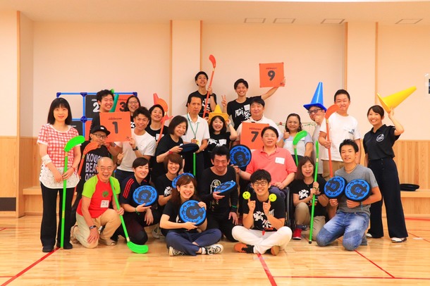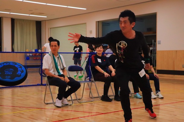 スポーツ班単独イベントでは、来場者様から高い満足度を得た「ディスゲッターナイン」フリスビー×ストラックアウトの新種目!柔らかいフリスビーを投げて9つの的を狙い得点を重ねていきます!