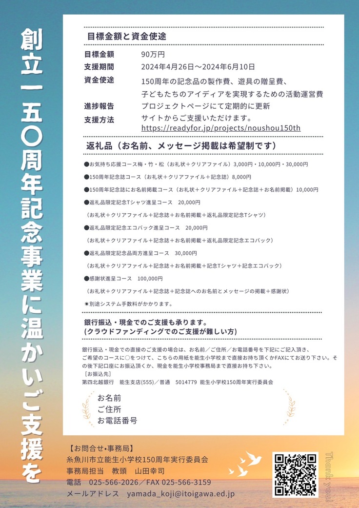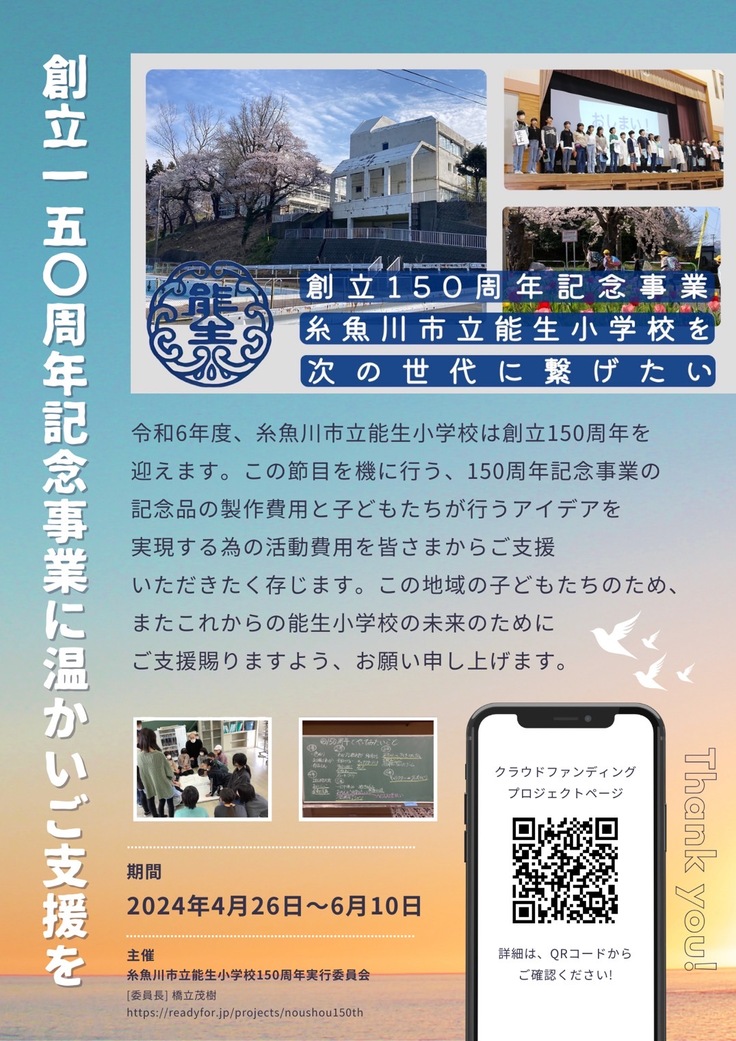 また、ポスターを貼っても良いと言う方がおりましたら、能生小学校までご連絡下さい。