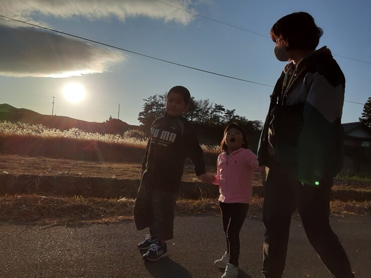先日、夕方近くに小学生の男児とお散歩をしていた所、急に雲行きが悪くなり雨が降ってきたので、民家の軒ぐろで雨宿りをしていると、車で帰宅された住人が雨雲レーダーを検索「30分は雨やまないよ、りんごクラブまで送ってあげるよ」と親切な声掛けを頂きました。この辺りの方は名乗らなくても「りんごクラブ」を理解し受け入れて下さっているんだと、この対応に涙が出るほどうれしくなりました。ここ岩村の地は、自然豊かでのどかな人柄、誰に対しても優しい町なんだと実感できた一瞬でした。